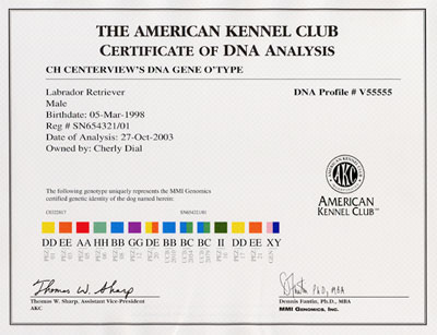 Да, мы действительно выполняем испытание E и мест B, которые определяют черный, коричнево-желтый цвет многих пород собаки, включая Лабрадоров. Лучший выбор, чтобы взять образец от собаки был бы луковицей волос (корень волос) образцы, или относящиеся ко рту или щеке образцы швабры. Цена теста - 85 Р, / собака, оплата ВИЗОЙ. Если Вы интересуетесь, пожалуйста дайте мне ваш адрес, и мы пошлем Вам пакет осуществления выборки. Я пошлю Вам инструкции и форму запроса....... Я так поняла, можно послать слюну? А что именно даёт этот тест, я не совсем понимаю? Генотип окраса? Т.е., например, посылаешь слюну или шерсть с луковицами черной собаки, а они дадут ответ типа: собака гетерозиготна по коричневому окрасу, по пятнистости, присутствует ген возрастного осветления (поседения) и т.д. ? Т.е. там будет написан генотип собаки с помощью условных обозначений? _______________________________________
