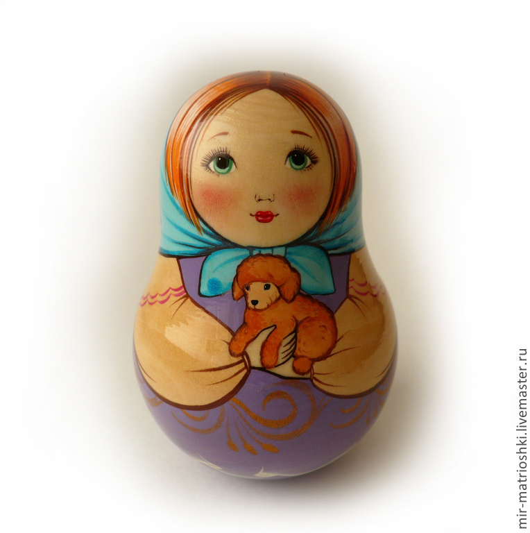Очень мне нравится вот эта матрешка-неваляшка, такая нежная со щенком пуделя: