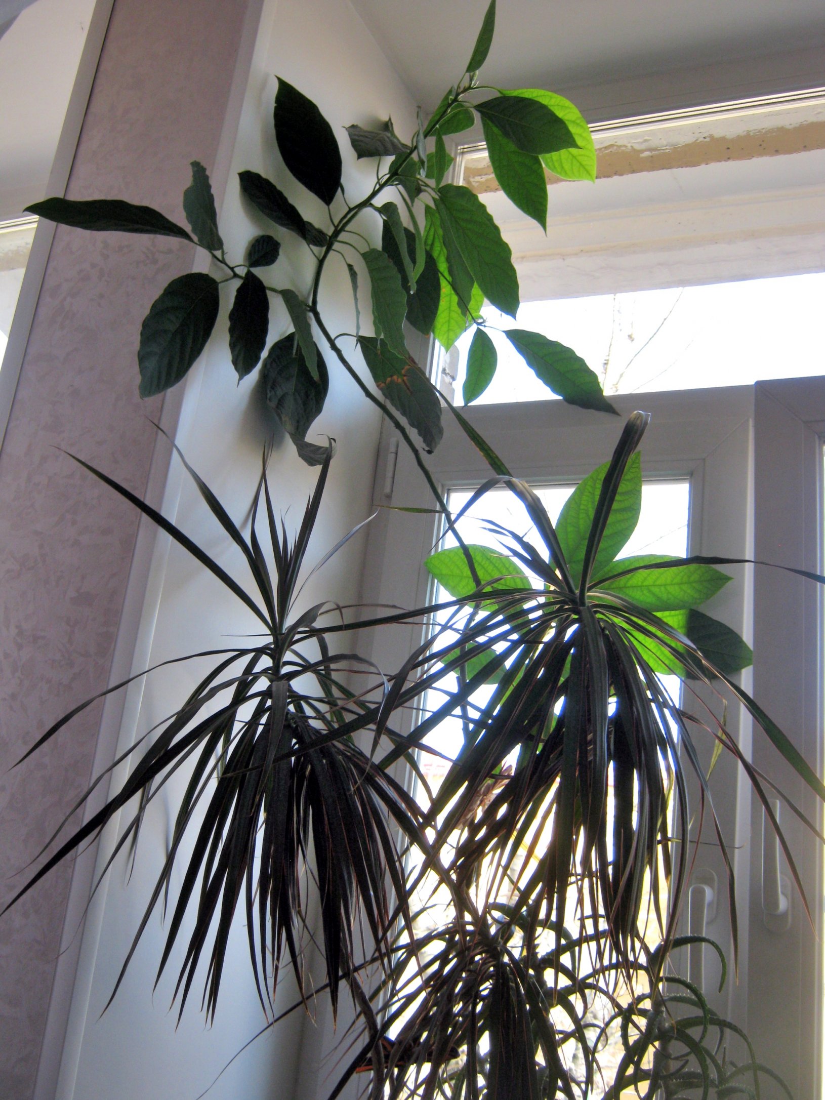 TAIL, вот сфоткала сегодня лимоноцветочки и авокадо. Правда, видно его не очень, драцена мешается, а убрать ее сложно, тяжеленная. Авокадо от горшка ствол без листьев, на половине где-то начинается боковая ветка и сверху разветвления.