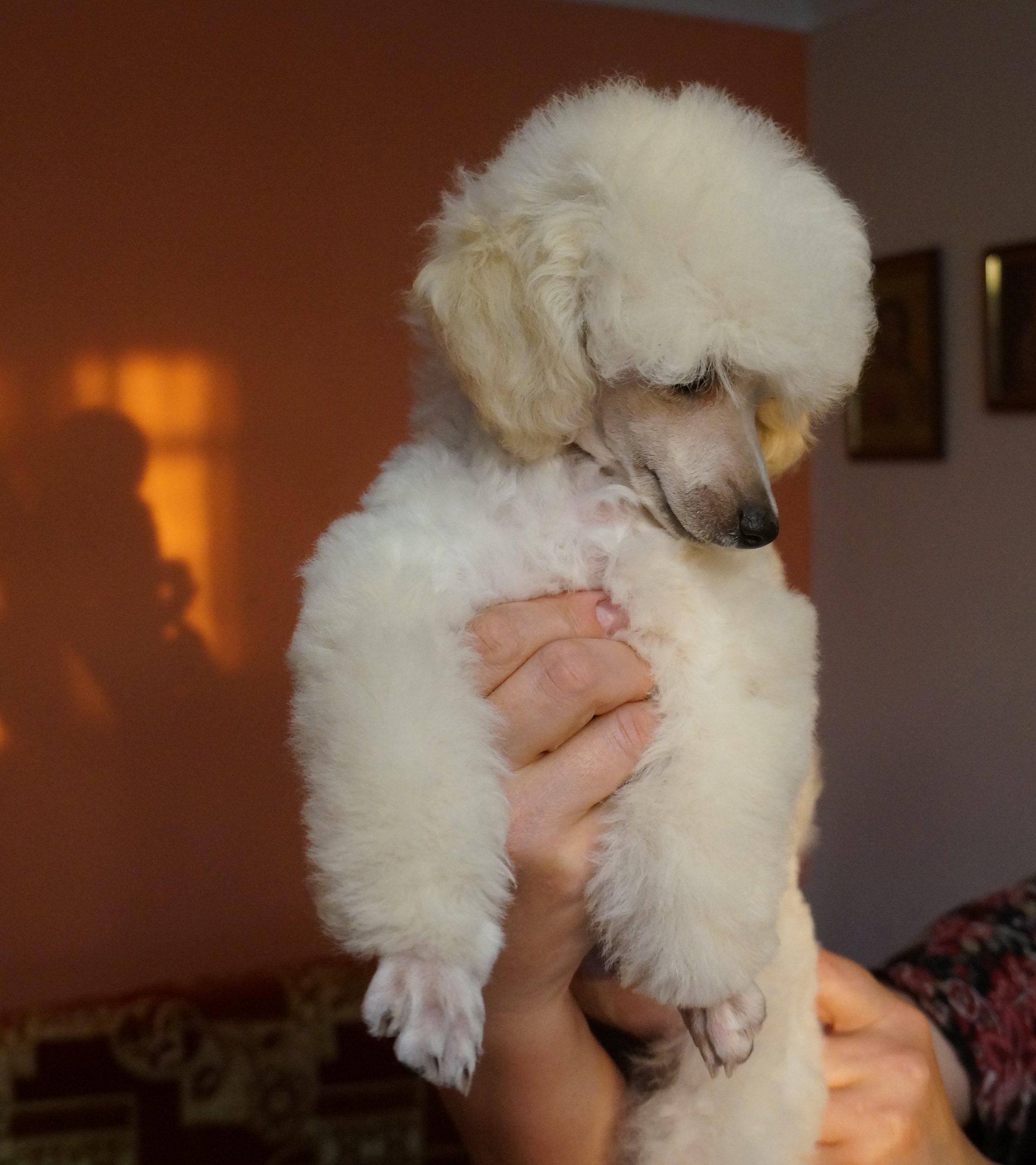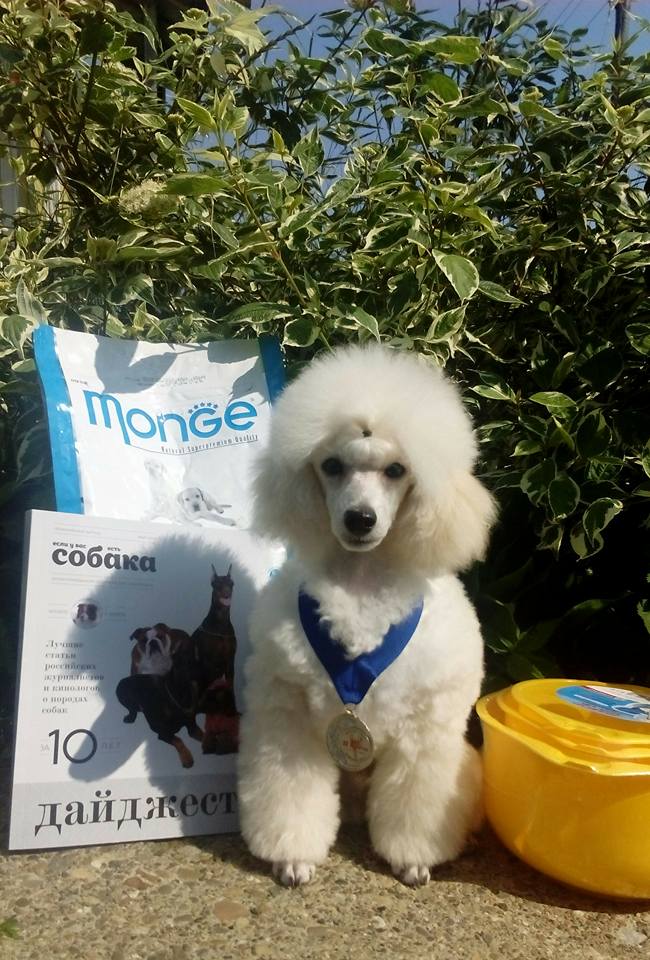 Won Best of breed baby and BISS Baby -3!!!! Judge Mach Lisbeth and Natalja Shalin. Cood like litle boy(Bragabout Jike Jake is I CH.Multy CH.BIS and BISS Winner+Nevskaja Zhemchuzhina Platina Parma is JGH.CH of Russia). Описание:оч. маленький белый кобель идеального телосложения имеет классическую голову.отл. пигмент .отл. движения.ОЧЕНЬ СЧАСТЛИВ В РИНГЕ. |