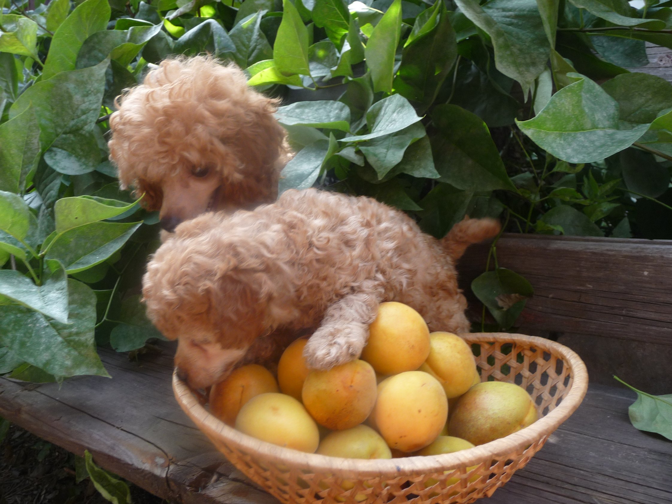 ко мне гость приходил-наш внук Янтарь с Липецкой слободы. 30.7 ему 3 месяца исполнилось,рост 18 см. а мой Бобик,родственник Янтарика сказал-ходят тут всякие.мне самому абрикосов мало!
