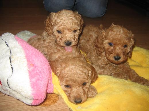 Мало того,что моя затянувшаяся простуда плавно перешла в воспаление легких,так ...последние пометы моего разведения неприятно удивляют.Начну с того,что ну почти все Джутовские дочери,и даже коровушки,от Лаврюхи СИЮ в помете давали хотя бы одного тоя.Я так надеялась на некрупную тойку Симону Синьеру Из Ворожеи тоже дочку Джута(Джу Тик Так ЧР),что она от Лаврюхи даст минимум одного тоя.......и чё.........Щеники родились мелкими -две девки и пацан(а мелких новорожденых от Лаврюхи я и не видала...)Тут от радости губа у меня и раскаталась..........Вчера с трудом выбираюсь на актировку щенков .......и........,меня встречают три лаптя.......кажный размером почти в полмамы.У меня пропал дар речи............А красноабрикоса получилась самая телушка.....,если не коровааааа,а была самой маленькой...Мои ученицы хихикают над размерами новоиспеченых тоёв...Ну,если не везёт,то по полной программе........и серые тои родились четыре кобеля и одна девка(я уже не знаю ,куда девать этих голубых кобелей),а белых карлу и тоя я до сих пор продаю(им почти пять месяцев)...ну....вааще...показываю фоты лаптей _______________________________________