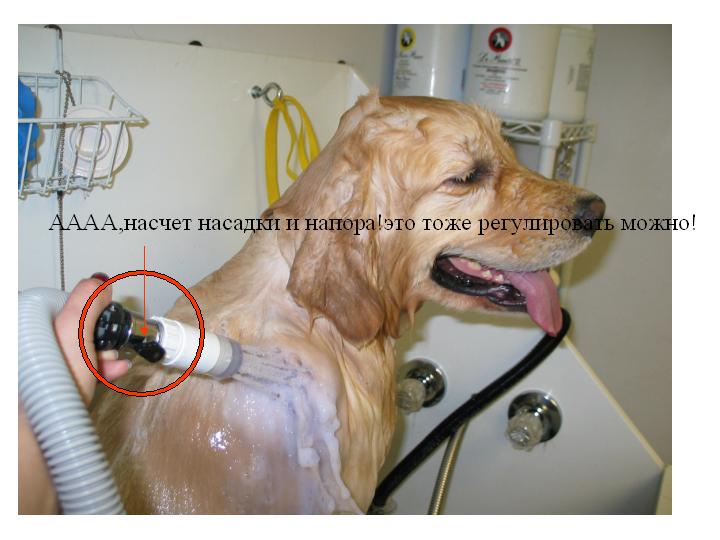 Я мою собаку етой гремучей смесью,...,когда собачка вымыта тщательно, нажимаю на грушу, смесь воды с шампунем прекращает литься из серого шланга.Вынимаю пробку из ванной грязная использованная после собаки вода с шампунем вытекает в канализацию. otкрываю кран(к которому крепится шланг типа душа) с горячей и холодной иводой,ополаскиваю собаку.Далее-наношу кондиционер,смываю снова,вытираю полотенцем собаку,ставлю на стол и начинаю процесс сушки феном.Вот.