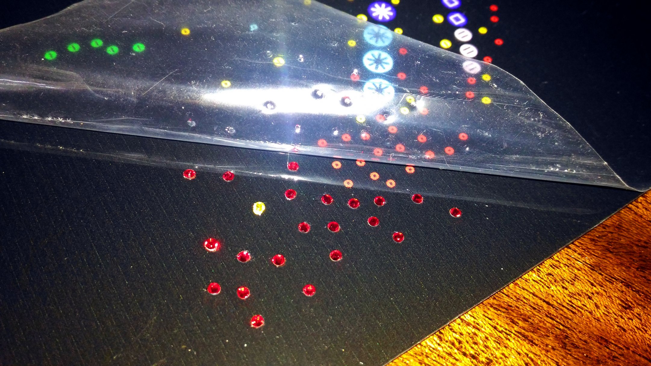Патти, Ну, это я так, про повышенную сложность :) В том плане, что стразы почти все чрезвычайно мелкие ) ну и липкого слоя не предусмотрено, поэтому клеить надо каждую. В наборе есть карандаш, самый обычный, белый. Написано ,что специальным восковым карандашом надо брать стразы, но они к нему не прилипают вообще, как не пыталась я это делать. И я приспособилась так - снимаю чуть чуть пленку. считаю, сколько стразин открылось, стараюсь по 5 штук за раз открывать, пока получается, потому что с углов начала. осторожно вытряхиваю из пакетика 5 стразин, наношу с молниеносной скоростью зубочисткой точки клея на схему и мизинцем прижимаю стразы по одной, они прилепляются в пальцу нормально и потом на клей, наклею все 5 штук, накрываю пленкой и рукой прижимаю. Такая вот система )))