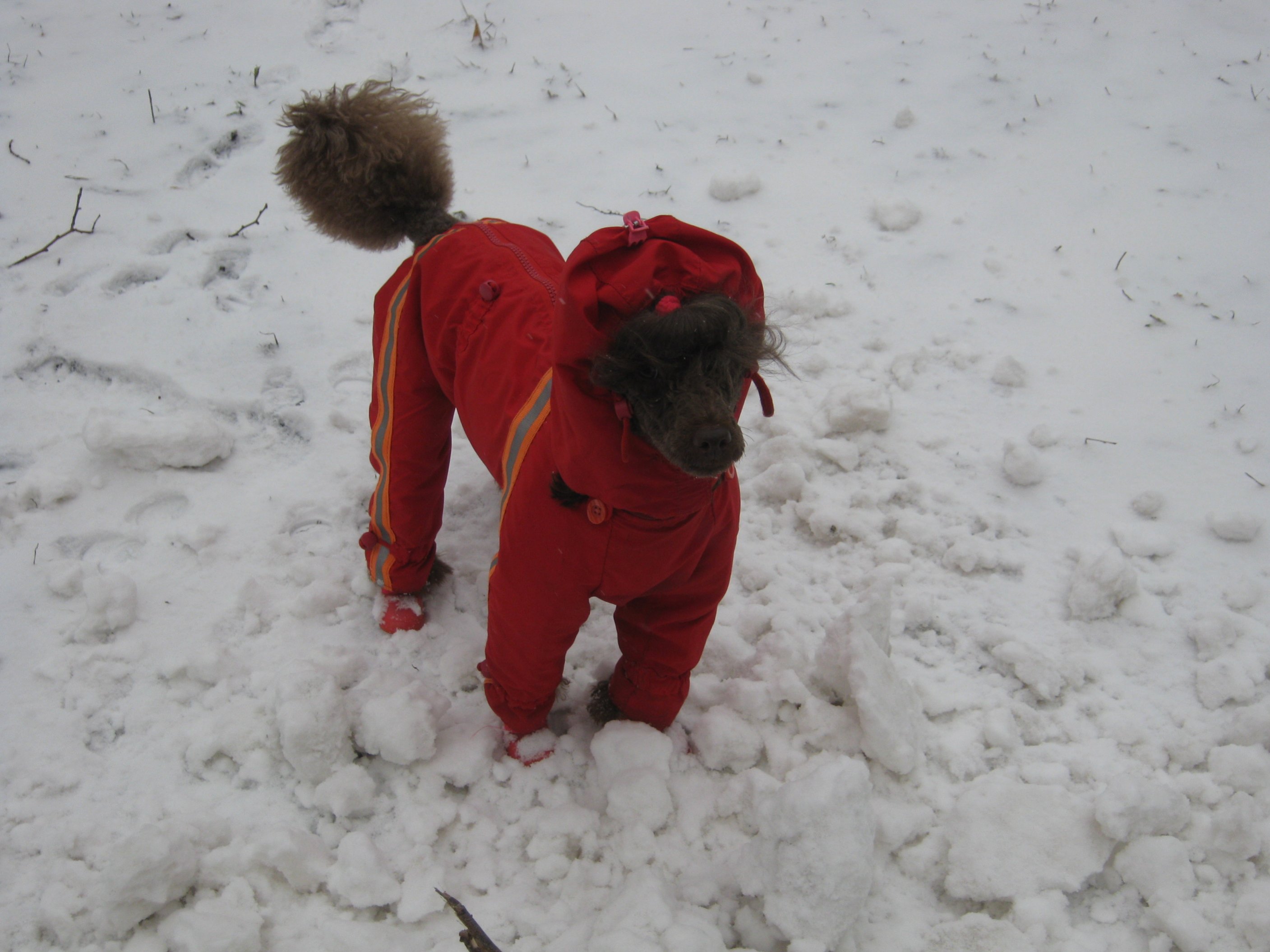 Кстати, поделитесь секретами, как пуделей в чистоте в такую погоду получается содержать?)) Комбинезоны-гетры? А то я как представлю, как собака да по грязи поскачет, да по мокрым листьям поваляется, да по лужам побегает... А после каждой прогулки устраивать полноценное купание с отфениванием и чесанием - это как-то... ну... нереально)))))