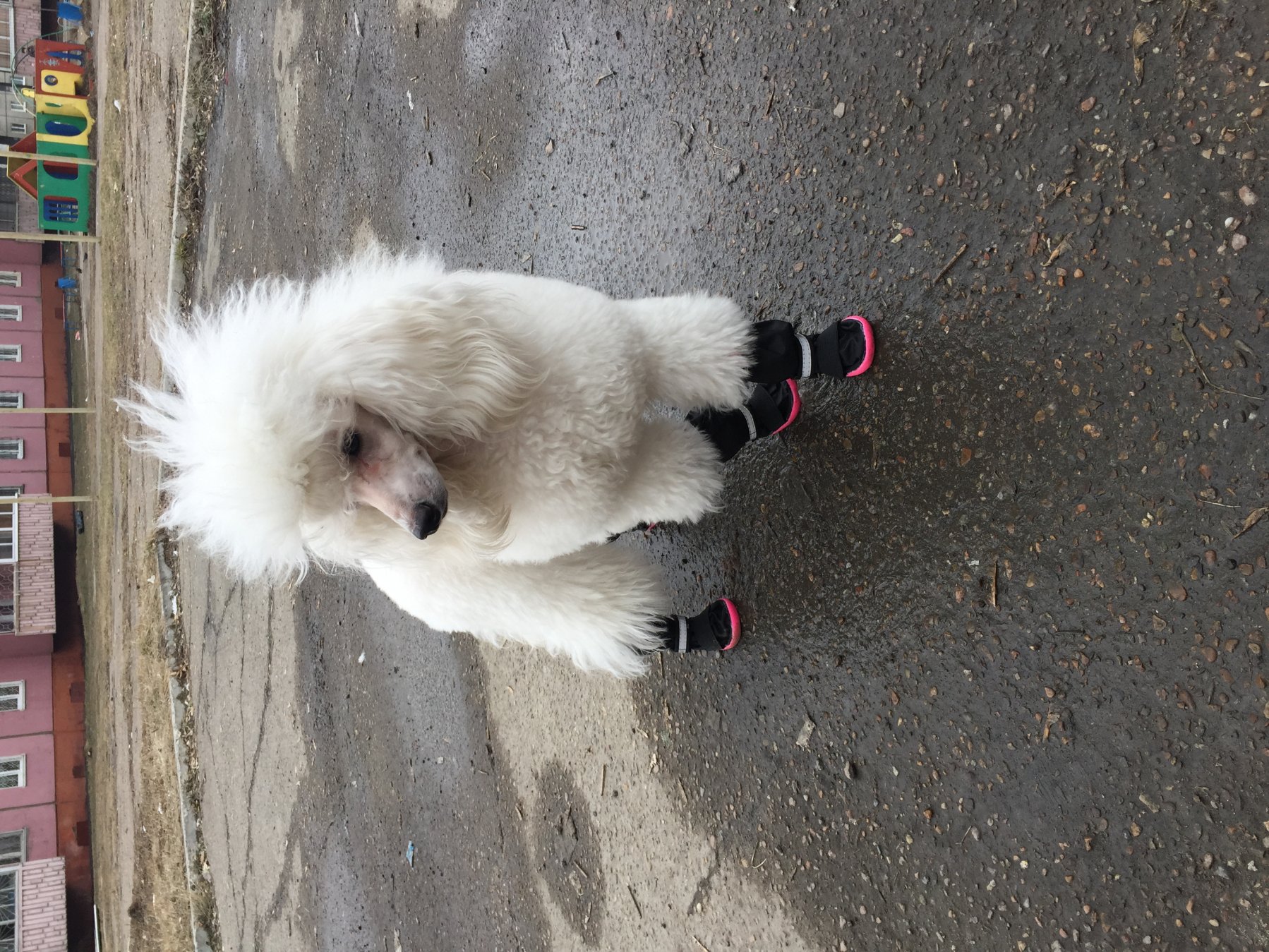 Совсем детских фото нет, покажу то, что есть. Не совсем хорошая судьба была у моей девочки до того, как она попала к нам...Меня до сих пор передергивает, как вспомню условия ее жизни, даже вспоминать не хочется(( Зато теперь у нас все хорошо и я очень этому рада)) Собака покупалась для ребенка, младший очень просил, где-то увидел пуделя и сказал, что нужен только пудель... Вот и начались поиски пуделя для себя на диван, а оказывается приобрели вот такое счастье)) Сейчас мы ЮЧР, ЮЧНКП и закрываемся дальше во взрослом классе, пока только одна САС. Причем белый окрас не рассматривали, боялась, что ну очень он уж маркий, а теперь другого и не надо))