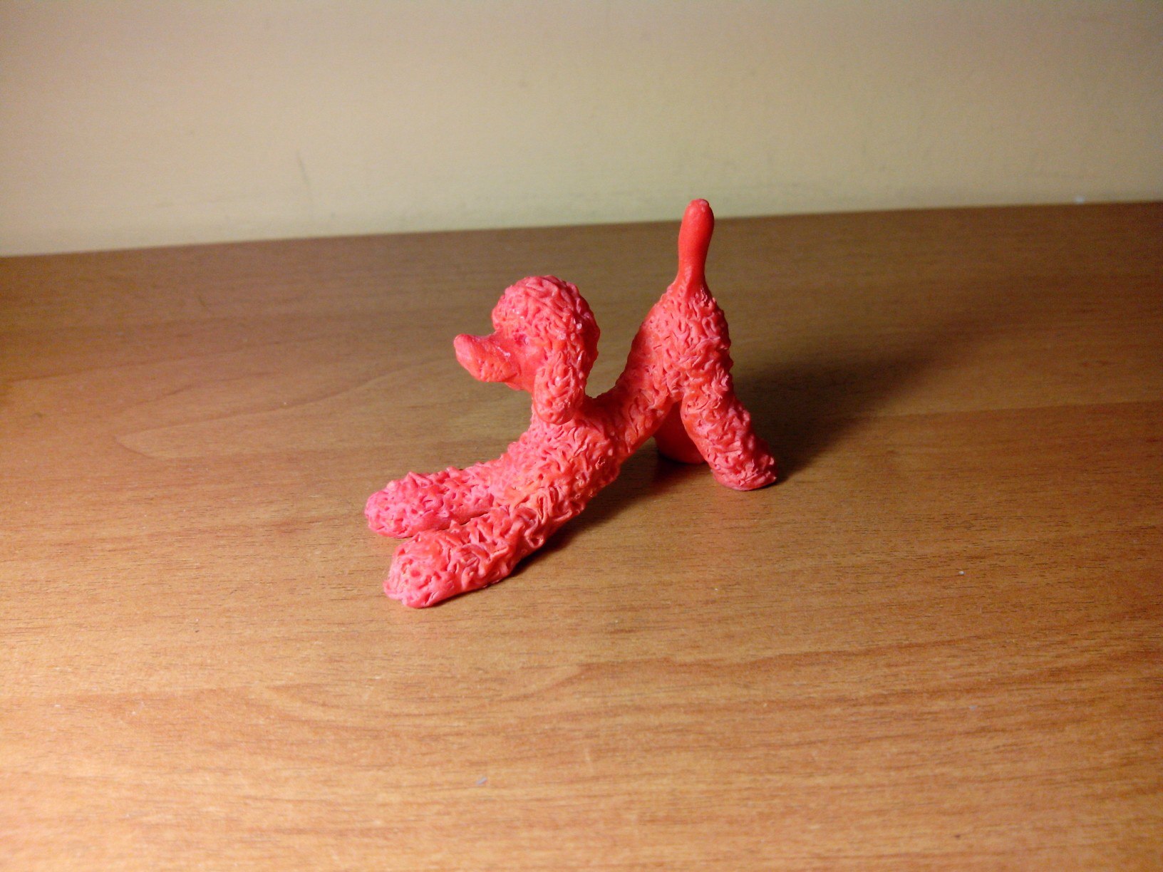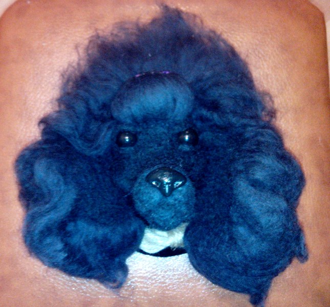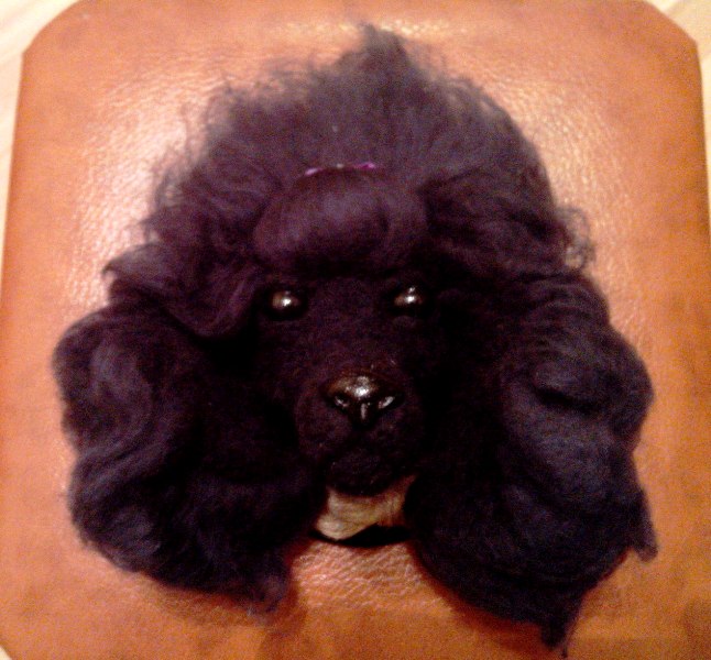 Портрет пуделя, где-то 20х20 см, и фигурка из полимерной пластики, где-то 5х5 см))