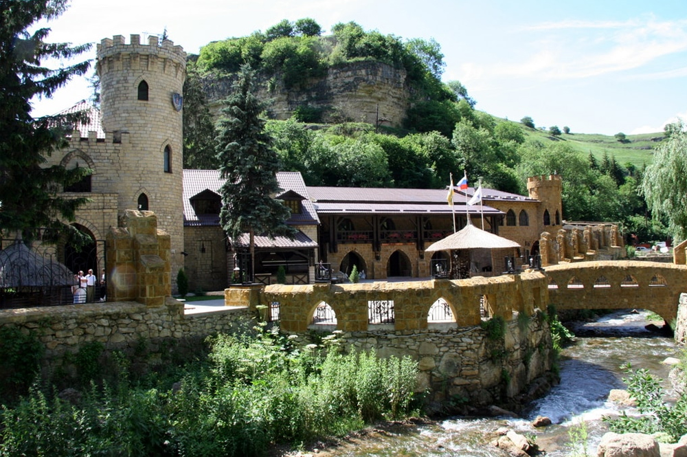 Замок коварства и любви Одной из самых интересных достопримечательностей Кисловодска по праву можно считать замок Коварства и Любви. Мало, кто может поверить, что под столь необычным названием скрывается одна из горных вершин, получившая свое имя за схожесть с сидящим, сгорбившимся мужчиной и романтической легенде. Местные жители утверждают, что в далекие времена в этом месте жил бедный пастух Али и его возлюбленная княжна Дауна. Двум влюбленным не суждено было быть вместе, так как отец девушки не соглашался на неравный брак. Тогда молодые люди решили покончить с собой, бросившись со скалы. Али осуществил их задумку, Дауна же испугалась смерти и по приказу отца вышла замуж. Однако, прожила она недолго – скончалась от болезненной тоски по любимому. Отец девушки был так опечален уходом дочери, что превратился в каменный утес. Под этим утесом протекает река, названная в честь юноши Аликоновкой. Сегодня туристы, приезжающие взглянуть на замок и на место событий, имеют возможность остановиться в комфортабельном отеле у подножия утеса и насладиться живописными окрестностями. Кроме того, в Аликоновском ущелье в 70-х годах прошлого столетия был открыт очень необычный ресторан, возведенный в виде средневекового замка. Местные жители утверждают, что в нем любил отдыхать известный тенор Федор Шаляпин. А однажды он выступал в одном из верхних гротов скалы. Как выглядит замок Коварства и Любви смотрите на фото. В следующем попробую фото скинуть ..... |