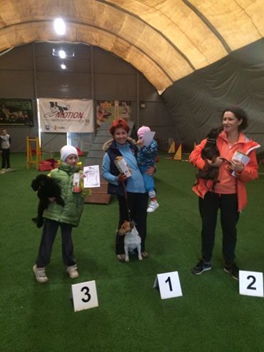 Участвовали в новичках в третий раз. Без косяков не обошлось, где-то я виновата (например обход вокруг собаки, которая лежит надо было делать так, что бы конус был слева от собаки, а я ее справа положила или после апорта моя решила, что без апорта она дальше работать не хочет и вообще, отдайте любимую игрушку=) ) Я думала, что мы даже на удовлетворительно не заработаем, но судьи решили по другому. В итоге мы набрали 184 балла (оценка хорошо), прошли трассу за 3 минуты с небольшим и получили приз "Самая гармоничная пара".