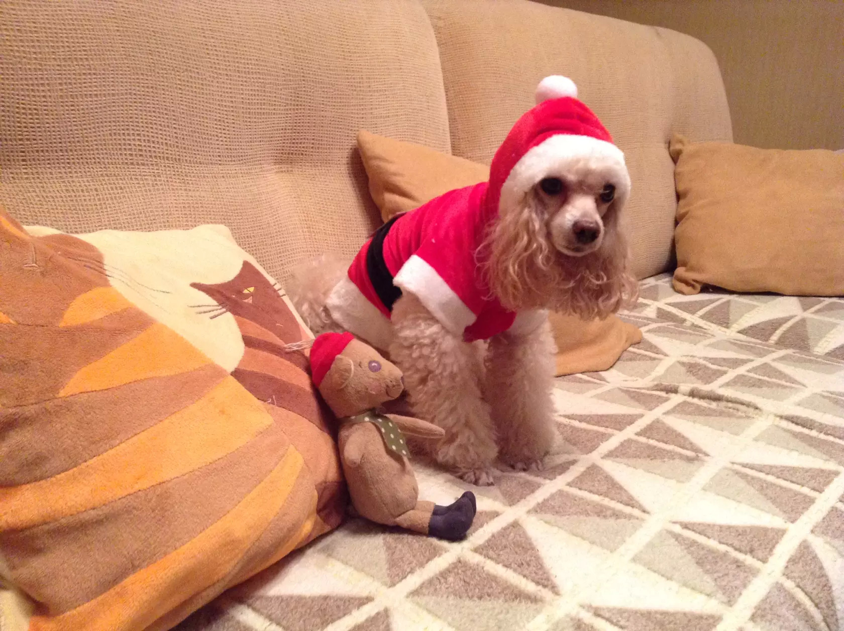 Снежинки на елку и костюм Санты. Вискарь был против примерок, Мариску - шо воля, шо неволя... На Вильке костюм не сошелся.