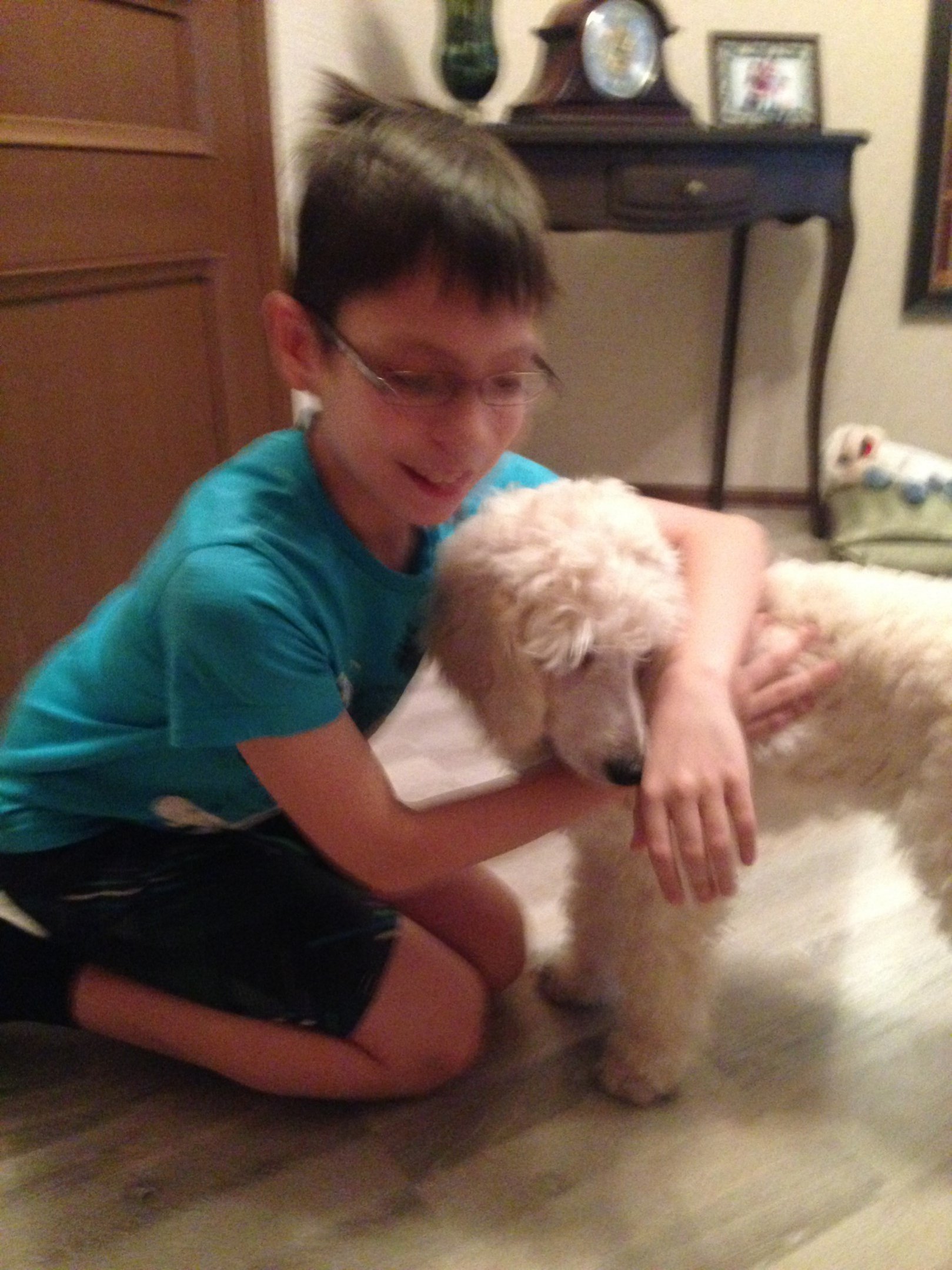 Вложение 86212Спасибо! Для весёлого малыша Гранивена нашлись замечательные руки - взрослые дети наших старинных пуделистов заехали "посмотреть малышей".