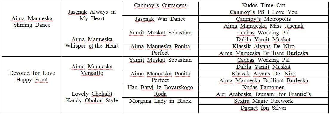 инбридинг 3*3 на Yamit Muskat Sebastian и Aima Manueska Ponita Perfect
