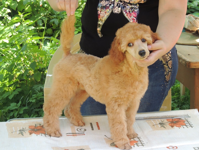 1. Кобель с желтой завязкой Джолли Стар Винтаж - 29,5 см 2. Кобель с салатовой завязкой Джолли Стар В... - 29,5-30 см 3. Сука красная и с красной завязкой Джолли Стар Вирджиния - 29 см 4. Сука абрикосовая с синей завязкой Джолли Стар Верона - 28 см 5. Сука абрикосовая с розовой завязкой Джолли Стар Василиса Прекрасная - 29,5-30 см Все ребята-пуделята очень ровные по размеру и весу, чуть меньше Верона. _______________________________________