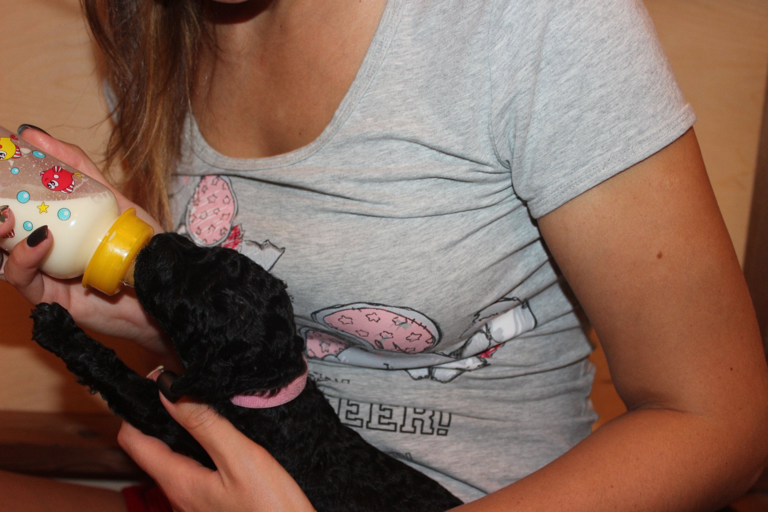 Ой не могу, мне аж дурно :))))) Весело у вас, да ))) А что в бутылочке? Смесь покупаете для щенков или сами готовите? Помню, когда моя первая пуделиха малая черная решила нам семерых щенков выдать (до этого 2 раза по 2 рожала), мы в какой-то книге вычитали, как сделать смесь самим и докармливать щенков. В те времена ничего готового не было, 95 год и вот помню, как мы молоко с желтком смешивали и что-то еще добавляли. Все щенки были крепкие, а одна девочка, которая родилась последняя, была совсем мизерная, меньше 100 грамм родилась и практически помещалась в спичечный коробок, такой мышонок. Так вот она была слабая и ее все распихивали и сил у нее особо не было самой сосать, вот ее и кормили из пипетки. И выкормили, выросла точная копия мамашы своей и под 40 см ростом :) _______________________________________