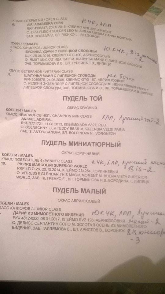 Всероссийской выставке собак всех пород (ОАНКОО) монопородной выставке СЕС (ранг ПК) монопородной выставке сао (КЧК) МОНОПОРОДНОЙ ВЫСТАВКЕ ПУДЕЛЬ (КЧК) монопородной выставке лабрадор (КЧК) которые состоятся 4 ноября 2017 г. Чистякова Л. - монопородки, всероссийская выставка Ревина Т. - всероссийская выставка,МОНО ПУДЕЛЕЙ место проведения: Воронеж, ул. Новосибирская 13 торговый центр "Стрелецкий Ряд" Стоимость регистрации: c 1 до 15 октября - взрослые классы - 1800, беби, щенки - 1200, ветераны - 1000 р c 16 до 28 октября - взрослые классы - 2000, беби, щенки - 1400, ветераны -1000 р c 29 до 31 октября - взрослые классы - 2300, беби, щенки - 1500, ветераны -1000 р участие в конкурсах 300 рублей. будет проведен конкурс на лучшую стрижку "Модерн". Справки по тел. 8-920-212-69-32, 8-903-85-818-96 e-mail: dimiralab@mail.ru во время выставки будет проводиться обследование пателлы с выдачей сертификата. проводит И.Ф. Вилковыский. запись предварительная мне на почту irinat69@yandex.ru. Оплата на месте _______________________________________