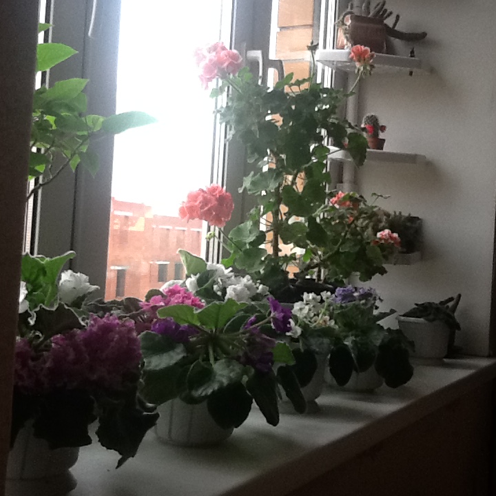 Осенний подоконник: к фиалкам переселилась герань с улицы.