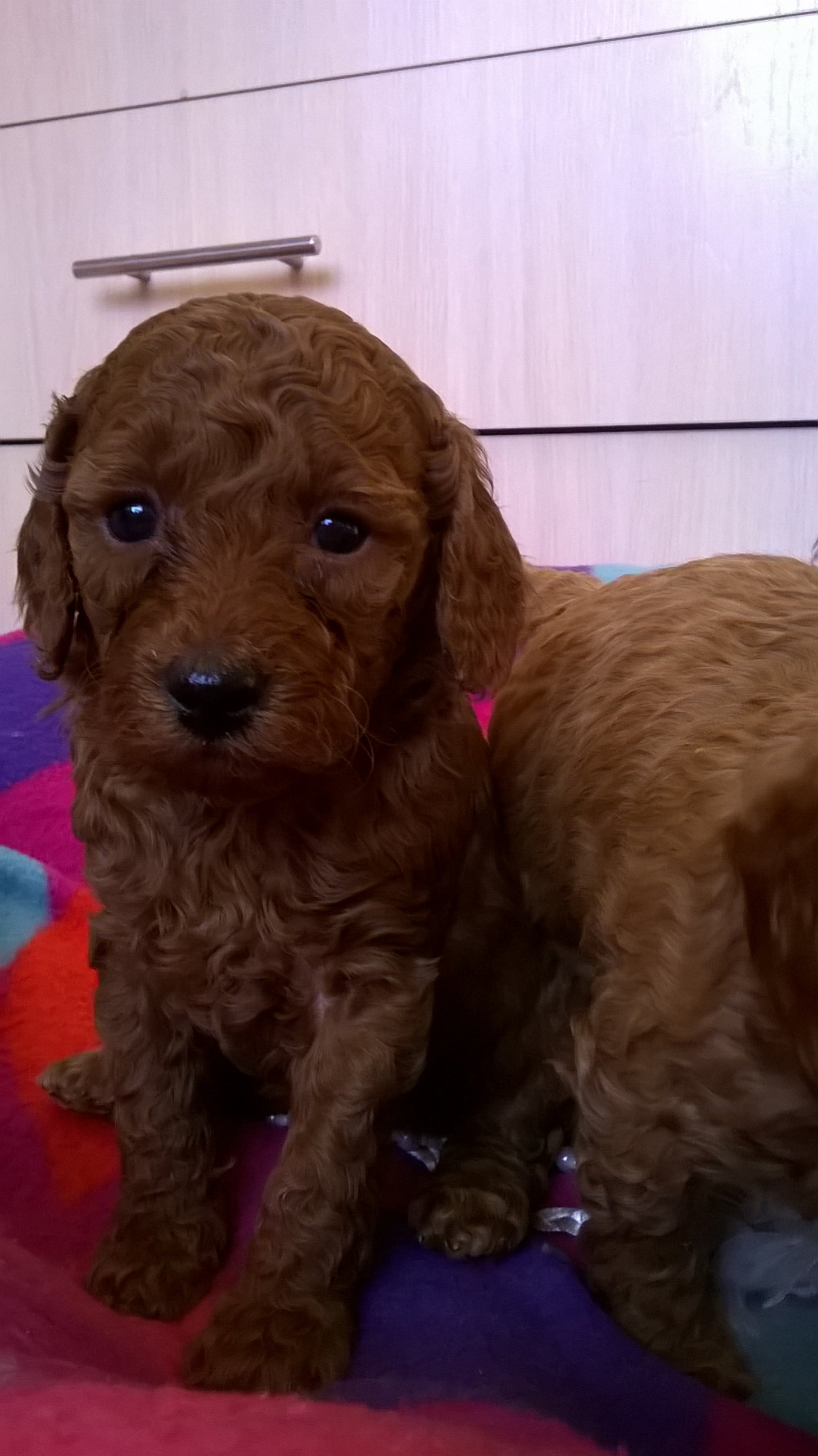 Мама и сама была очень яркой для абрикоса, но сейчас стала светлее. Щенки скорее малые, чем миники - папа дает потомство в маму, а..... может и будут миники - тоже хорошо)))
