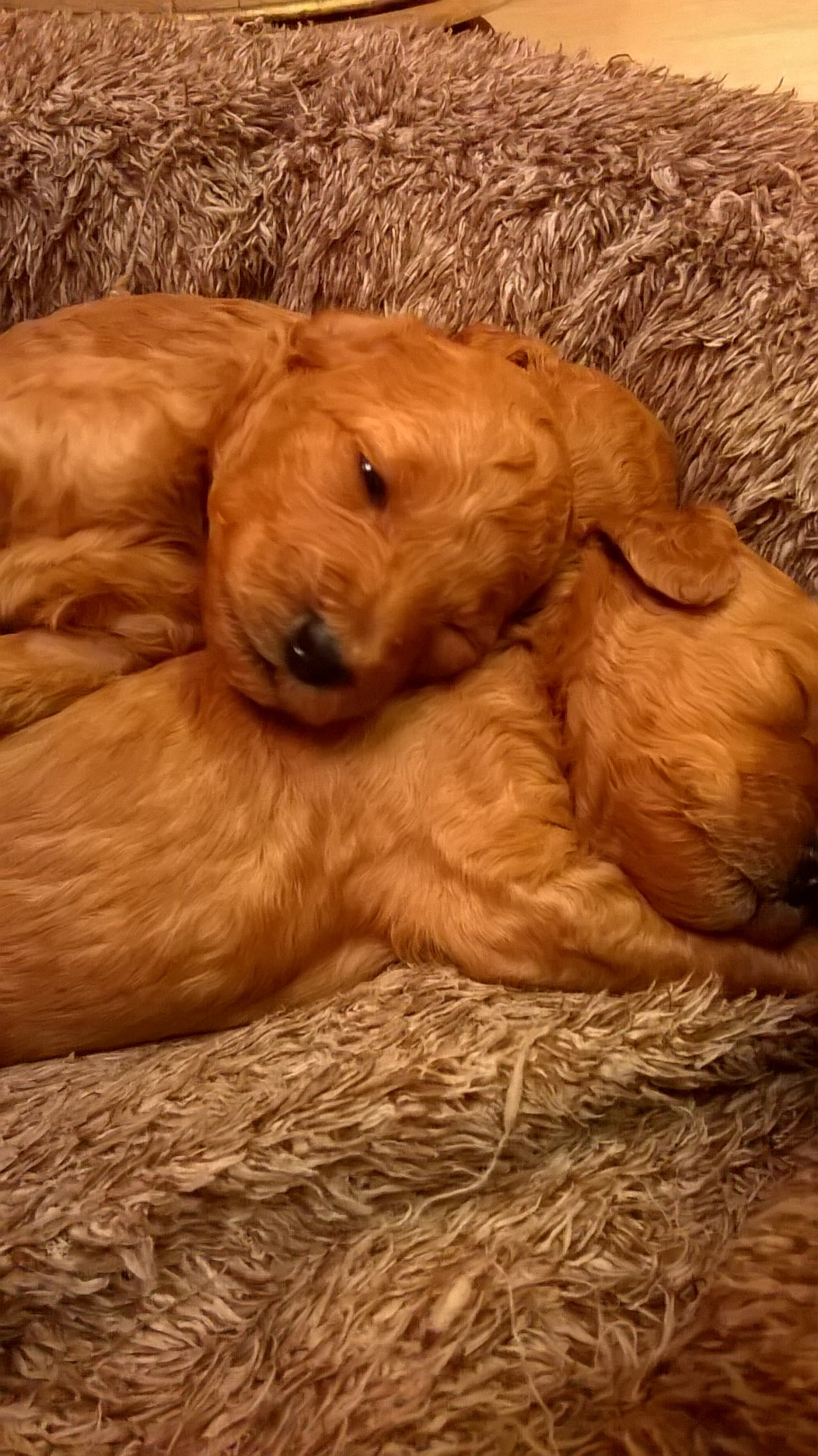 Мама и сама была очень яркой для абрикоса, но сейчас стала светлее. Щенки скорее малые, чем миники - папа дает потомство в маму, а..... может и будут миники - тоже хорошо)))