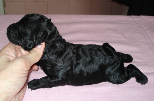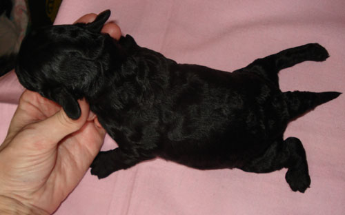 Тань, спасибо! Я ими очень довольна, дело в том, что их мама с белыми кровями и 2 раза до этого рожала мне белых, а здесь три и все черные. Два щенка очень крохотулечные, а на последним фото девочка покрупнее мне кажется еще и с хорошей шерстью будет.