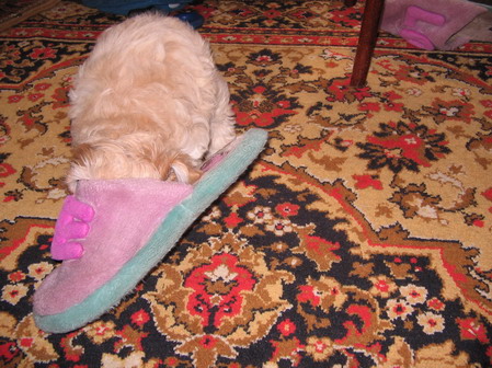 Марина,ну,ведь ребёнку надо объяснять ,что тапочки одевают не на голову а на лапки,и желательно своего размера!!!!А то так можно и затеряться!!!