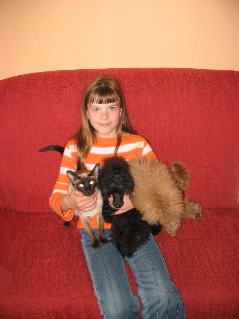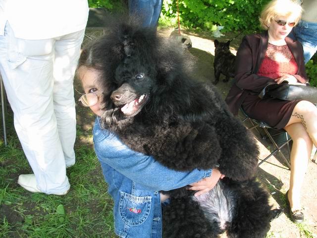 а вот и моя дочечка с собакевишной))) Это Полинка карлицу нашу на руках держит))) Вес взят! Потому чито наша манюня Найка при росте 34 см весит... 8 кг!!!!!!!! фотка с последней выставки