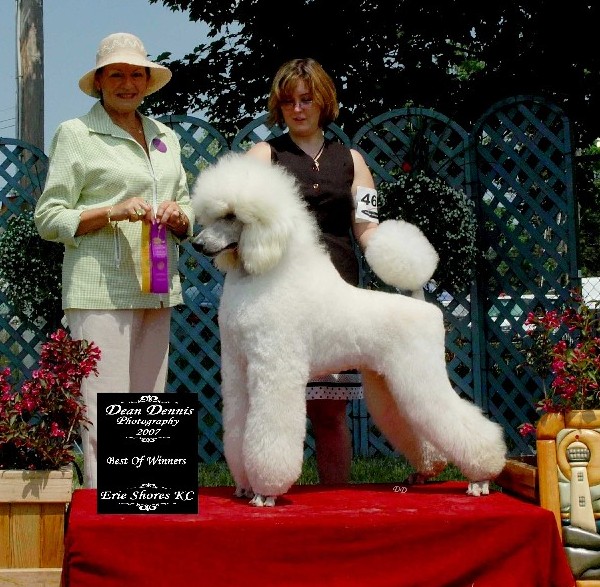 Мать: Can.Ch. Dawin Spirit of The Night (black) Отец: Am.Ch. Huffish Entrapment (white) Мальчишке 10 месяцев, всего за 4 выходных он закрыл титул Canadian Champion. |
