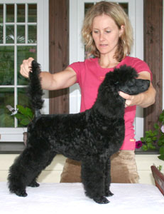 Zyami, прям не пудель, а лебедь черный! Очень мордашку хорошо состроил- пытается взрослым показаться, но наверно по характеру он спокойный?