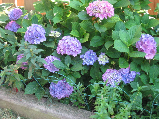 ![]() А вот маленькое растение за лето отрастает очень неплохо... А вот во что моя гортензия превратилась... Обратите внимание, что на одном и том же кусте и почти розовые, и сиренево-синие цветы имеются... Интересное растение! |