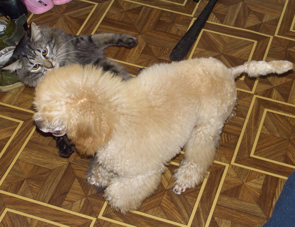 Кот у мамы очень скучает ,плохо ест и плачет.Кнута не хватает. елисей добавил(а) [date]1193298045[/date]: Сейчас они одного размера,только Глаша выше кота,31 см в холке-карлик. _______________________________________