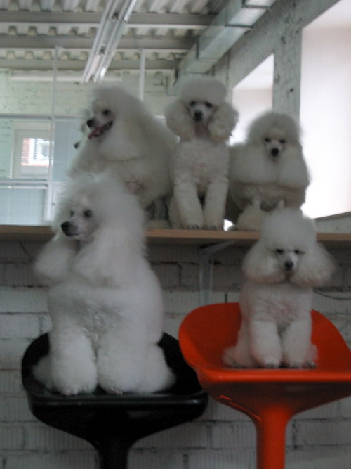 Наверху слева направо: Sawawhite's Mr AiryArabeska (внук и правнук Мити), Sporrens Blast-Off (сам Митя 9,5 лет), АА Freelove (внучка и правнучка Мити, дочь Яшмы). Внизу AA Highflyer LS (Митин внук) и АА Яшма (дочка и внучка Мити).Вот такие сложные родственные отношения .Жаль фото не очень резкое. _______________________________________