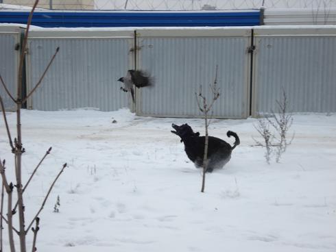 Наглая наверно попалась ворона! :)) Мы тоже иногда таких встречает, Лорд даже начинает злится, когдя рядом прохаживается :))))