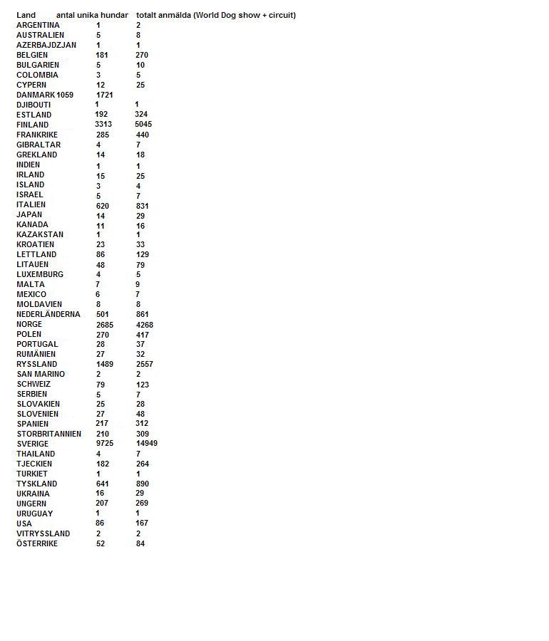 Ras (Fet stil = Svensk hundras)otalt (World Dog show)