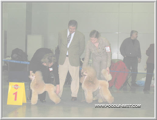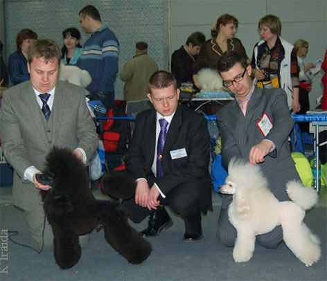 супер результаты! Поздравляю ВСЕХ! Поздравляю Олю Архипову с победами Калины и Карнавала, братика Пружинки- Принца Робина с победой в классе чемпионов и свою Раду с победой в открытом классе и САСом второго дня!!! Я только на выставке заметила, у Радки выдран клок и дырка не глубокая на ноге которую я естственно когда чесала (пока не заметила) задела. Подозреваю это был "подарок" от Пружинки за то, что уехали на выставку без нее. До последнего сомневалась идти ли в ринг, но раз всеравно уехать по некоторым причинам не могли, решили всетаки выйти, темболее Радик вроде разбегалась. Безумно рада за свою девочку, умничка! По рассказам очевидцев в ринге маленько похромала на повороте! А вчера Радочка стала 3 в классе Чемпионов! А вообще в этом году у пуделей конуренция была оочень сильной. _______________________________________