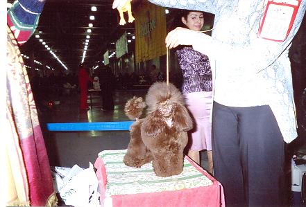 Помещаю, что удалось заснять. Моего кобеля выставляла опытный хэндлер, поэтому пришлось маскироваться, и сама я своего кобеля коричневого той-пуделя, юниора Ютана Едигея не сфотографировала. Он получил в оба дня J.CAC. На лучшего юниора оба раза проиграл сукам. Я благодарна за этот результат Ирай и, конечно, мастеру по стрижке.