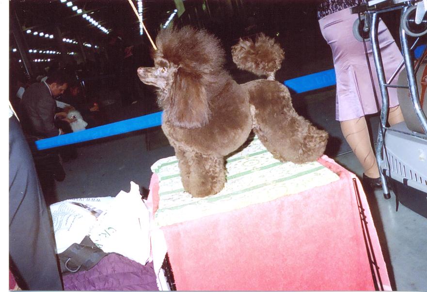 Помещаю, что удалось заснять. Моего кобеля выставляла опытный хэндлер, поэтому пришлось маскироваться, и сама я своего кобеля коричневого той-пуделя, юниора Ютана Едигея не сфотографировала. Он получил в оба дня J.CAC. На лучшего юниора оба раза проиграл сукам. Я благодарна за этот результат Ирай и, конечно, мастеру по стрижке.