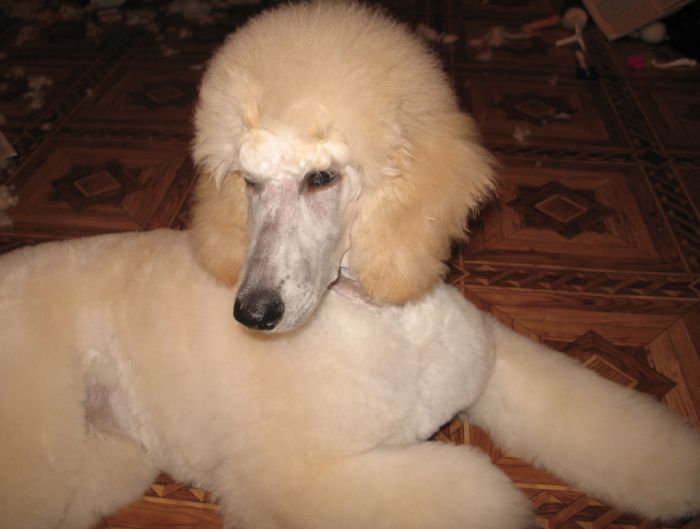 И стоит сама как красиво!!!! Отлично что решилась состричь "щенячку", ей этот прикид очень идет. Супер!!! А лапы они все любят свои погрызть и именно когда лежат на спине :). _______________________________________