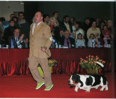 Нет. Самое интересное, что я нашел его только что в апрельском номере журнала "Друг собак". Ольга Шилова в статье о выставке в Любляне (январь 2008 года) упомянула его, поскольку он с бассет-хаундом выиграл бест второго дня. Оказывается его зовут Фабрицио Мани или мистер Зеленые Ботинки, "потому что он всегда выступает в ринге в ботинках ядовито-зеленого цвета" (цитата и фото из статьи).