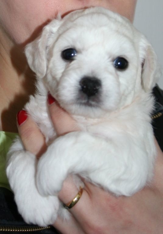 Моя подруга пыталась на днях посмотреть движения Шу-шу! ))))))))) Наивная девушка!!! Мы просто не умеем бегать, мы скачем как заяц ))))))))), только нам уже 5 месяцев. Видно, у Луны не бишон, а заяц родился! )))))))))) Хорошо, хоть стоять вроде бы научились, ровно 10 секунд стоим смирно )))))))) . Вот поедем на Белые Ночи скакать по рингу. |