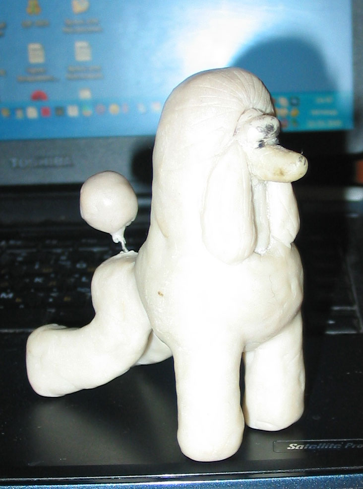 Зямик!Посмотри что я нашла.....Лепила в 94-95году....уже точно непомню....Прототип ибольшого пуделя...ничего не напоминает?Привда линии несколько утрированные...ну так это прототип-ведь