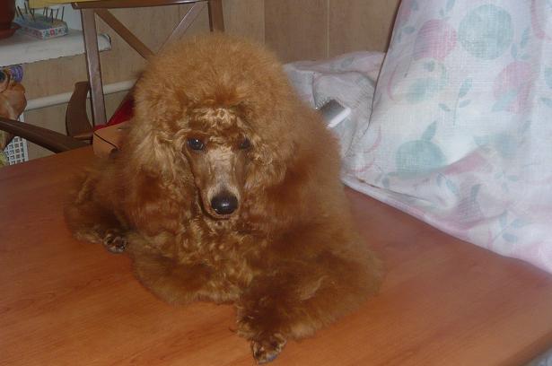 Первый братец - малый абрикос ДС Соло (который у Хиллари), второй- красный карлик ДС Сомелье (остался у заводчицы в Уфе), а третий - абрикосовый карлик, который уехал в Москву,о том, чтоб выставлялся, не слышала... На фото Ленчи и Хиллари-один и тот же кобель, это видно по пиджаку и обуви владельца-хендлера