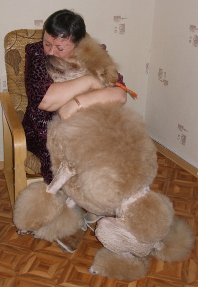 Я выставила свою собаку, полюбовалась на финских пуделей и щенков. Сделала тест своей малой черной Соньке на коленки. Тест надо заметить отличный! Благодаря Алле Игоревне я познакомилась с г-м Ханнелиусом и поупражнялась в разговорном английском)))))). Алла Игоревна, БОЛЬШОЕ спасибо за чудесно организованную поездку, моей благодарности нет границ. Теперь немного фотографий. Это малый абрикосовый кобель, возраст около 4-х месяцев of Hannelhill James Bond |