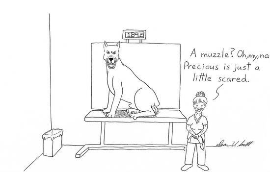 Намордник?! Что Вы, моё сокровише просто немного нервничает