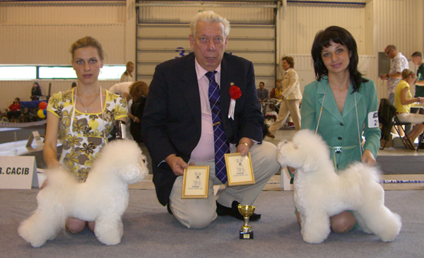 Всем привет! вотмы и вернулись из поездки уставшие но довольные и счастливые. Прокатились по Вильнюсу побывали на трех выставках и увезли домой все титулы которые только можно было взять))))))) как и обещались приехали финские бишоны и конкуренция была и в кобелях и в суках но... наши малыши Тема и Санни опередили всех в этот раз они были очень эмоциональны активны и красивы!!!!! Все три дня были одни и те же собаки и результат оказался очень стабильным и вот какие наши результаты 1-ый день эксперт Вальтер Янгблат (Германия) Тема САС CACIB BOS Санни CAC CCIB BOB на бесте 9 группы 2-ое место 2-ой день Балтик Виннер эксперт Рита Кадике-Скадина Тема CAC CACIB BOS БалтВинн Санни CAC CACIB BOB БалтВинн на бесте 9-ой группы 2ое место 3-ий день национальная клубная выставка эксперт из Финляндии ( сорри забыла фамилию посмотрю и скажу) Тема CAC BOS чемпион национального клубаЛитвы Санни CAC BOB чемпион национального клуба Литвы на бесте 9 группы 2-ое место Мы очень довольны и в один из дней нам было очень тяжело и очень долго выбирали лучшего кобеля но мы выстояли и выбегали хотя особенно и не надеялись. В этот раз успех сопровождал нас всю поездку Последний раз редактировалось ??????; 04.08.2008 в 17:17. |