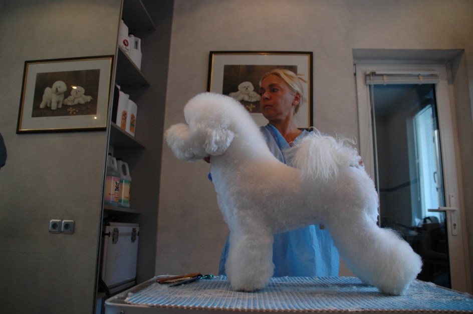 И до сих пор я не могу поверить, что делаю это - стригу собак! Потрясение - ведь уже больше двух лет, как я этим занимаюсь, а все никак не моуг привыкнуть. У меня в грумерской перед носом висит плакат с фотографиями Симо - вот собака-легенда! Я все время смотрю на него, когда стригу своих собак. Но таких, как Симо, я пока еще в зеркале своей грумерской не встречала! Потому, что таких грумеров, как Яна, вообще больше не существует! Мы можем лишь немножко приблизиться к ее уровню. Не в обиду всем присутствующим! Это лично мое мнение! _______________________________________
