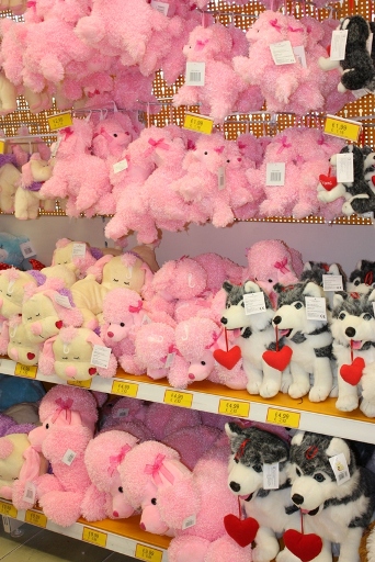 а уж когда мои глаза в детском магазине упали на подушки с пуделями, у меня началась лихорадка. И только благодаря трезвой , в плане пуделемании, Марине, я смогла купить только две подушки с пуделями и одного розового пуделя, который к сожалению, МАРИНА СЛЫШИШЬ!!!?? он не танцует и не поет(я в глубоком горе) и я хочу второго такого же, но рабочего!