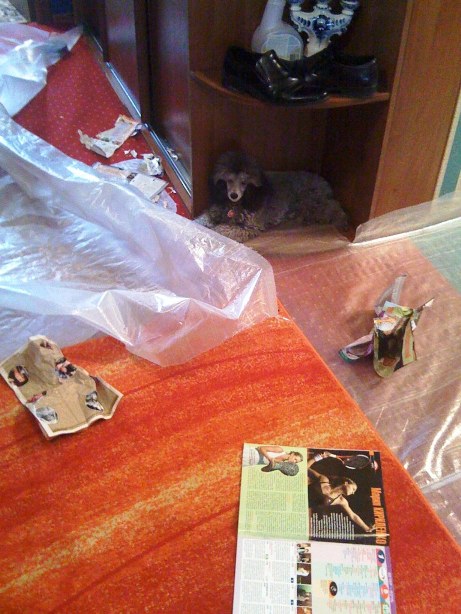 Вам еще повезло, что клееночка целенькой осталась. У нас бы к концу рабочего дня клочки по закоулочкам летали бы только