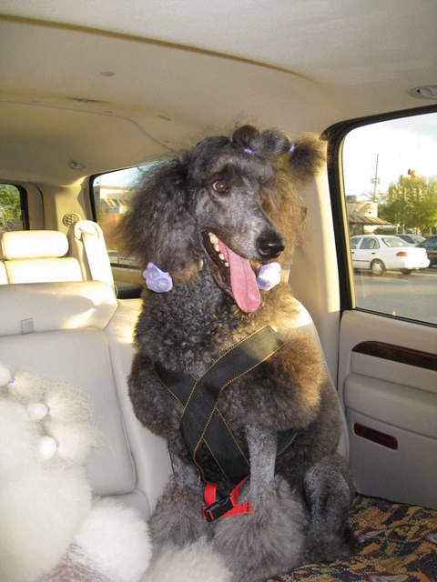 а для маленьких собак есть "корзинки безопастности". Этакое гнездышко, притянутое к сиденью, а сама собачка еще и с ремешком куда-то там притянута. Ноя не слишком вдавалась в такие подробности - мелкие у меня обычно в клетке ездят, надежнее как-то.