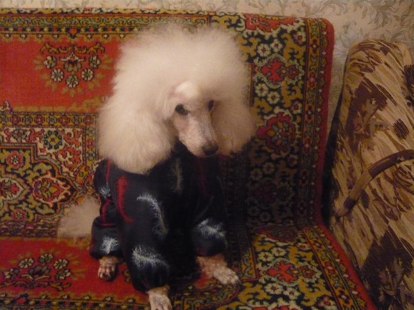 Ефим из Белой Стаи.сын Циприны Сильвер Клод и Лунного Искусителя.Сегодня(01.11.) моему ПУДЕЛЮ.собаке с Большой буквы исполняется ТРИНАДЦАТЬ лет!Известный в очень узком пуделином кругу.Чемпион России.Самая мудрая.самая умная.самая замечательная собака в мире .Глава нашей стаи.Интереснейший характер.настолько хорош.что двух последних сыновей назвали его домашним именем.но мой Филик один единственный такой.Тринадцать лет счастья от совместной жизни пролетели незаметно.И все тринадцать лет(15 декабря будет 13 лет как я привезла его домой) очень часто я с благодарностью вспоминаю Марию Николаевну Соцкую за подарок.который она сделала .отдав мне Филика.Не знаю.бывает М.Н.здесь на форуме.но если у кого есть возможность-передайте ей САМОЕ БОЛЬШОЕ СПАСИБО от Леры за Фильку!В подарок Филик получил новый зимний на меху комбинезон.но сыру обрадовался больше!Всем животным здоровья и любящих владельцев!!!!