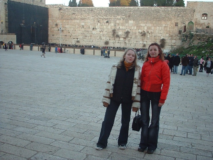 А вот сразу за нами, вдалеке, возле стены молится куча ортодоксальных евреев, с пейсами и всеми делами... но сфоткаться с ними не удалось, они за забором, отдельно от женщин... и от фотоаппаратом стремительно убегали. А рядом со мной молодая жена брата Молги!!! Она из России, и я наблюдала ее приезд!!! ( свадьба была в России и кроме собсно мужа никто из родных ее еще не видел!!) |