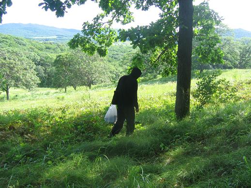 Дикий лесной человек,хи-хи,почему то с целлофановым мешком,хи-хи,очень похож на моего мужа...